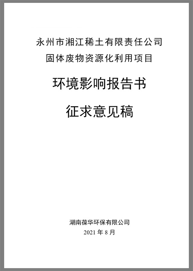 永州市湘江稀土有限責任公司 固體廢物資源化利用項目 環(huán)境影響報告書 征求意見稿