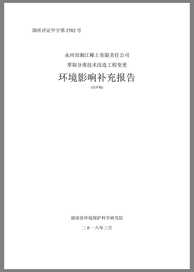 公示:永州市湘江稀土有限責任公司 萃取分離技術改造工程變更 環(huán)境影響補充報告